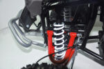 - Priekinė dviguba mechaninė pakaba, o galinė vieno amortizatoriaus (monoshock);